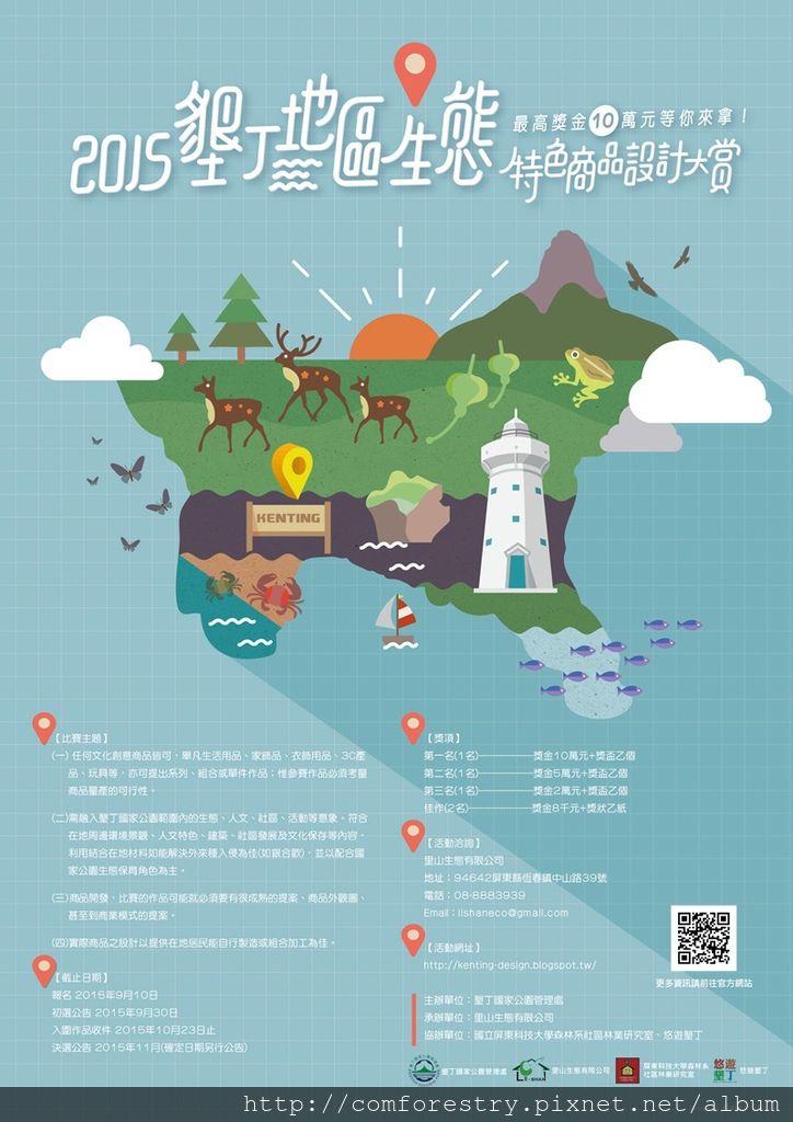 墾丁地區擁有豐富的自然資源與地理景觀,更有內涵精彩的人文歷史;而近幾年於該地區多個社區開始推動的生態旅遊行程也逐漸受到國人的喜愛。為加強民眾對於墾丁地區生態社區的認同,了解生態旅遊的文化與特色,特邀請民眾以墾丁各生態社區為主題,發揮創意,提出具有墾丁地區生態與文化特色之設計構想。得獎作品經市場評估後,如能達成墾丁生態旅遊文化之目的,將進一步開發為商品進行販售。